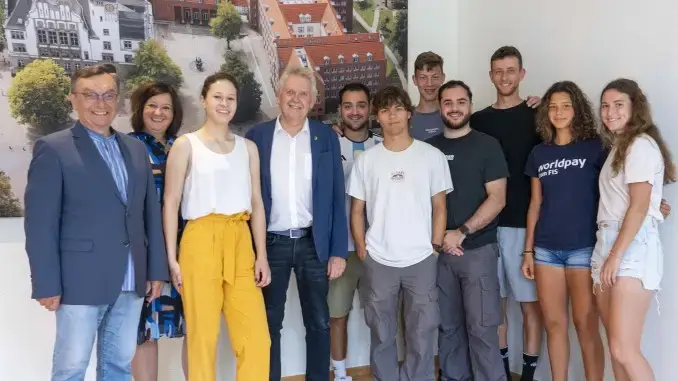 22.06.2023 – Partnerstädte – Vom 21. bis 24. Juni ist eine Gruppe junger TennisspielerInnen aus Enfield zu Gast in Gladbeck, um hier unter anderem ein Vergleichsturnier auszutragen. Die Teilnehmenden des diesjährigen Sportaustauschs waren jetzt zu Besuch im Rathaus und wurden von Norbert Dyhringer, Erster Stellv. Bürgermeister, begrüßt.