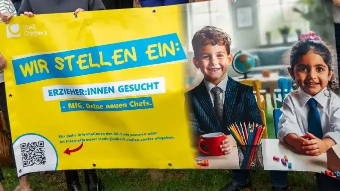 Gladbeck – 19.09.2025 – Personal-Kampagne – Mit einer neuen, groß angelegten Personalkampagne wirbt die Stadt Gladbeck um pädagogische Fachkräfte für Kindertagesstätten. Der Fachkräftemangel stellt die Stadt Gladbeck wie viele andere Kommunen vor große Herausforderungen.