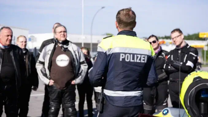 27.05.2024 – PoliTour – Rund 120 Bikerinnen und Biker waren am Sonntag, 26. Mai, bei strahlendem Sonnenschein wieder auf PoliTour mit der Polizei. Wegen der bevorstehenden Fußball-Europameisterschaft gab es in diesem Jahr nur eine gemeinsame Motorrad-Ausfahrt, aber die war „rundum gelungen“, wie Polizeihauptkommissar Jörg Teichert am Ende zufrieden feststellte.