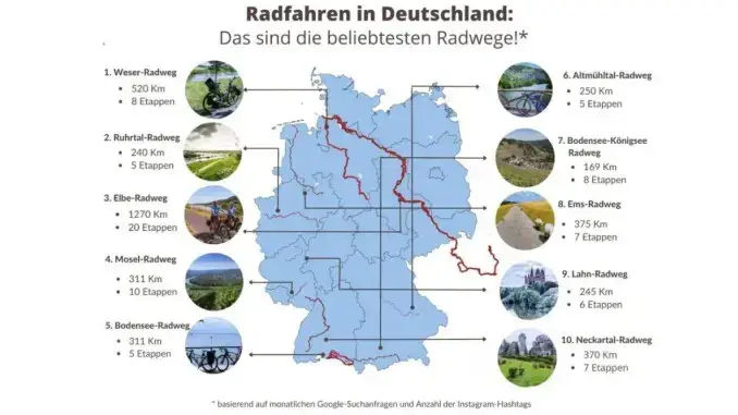 Entdecken Sie die Top 5 der beliebtesten Radwege Deutschlands und warum gerade diese so beliebt auf Google sind: