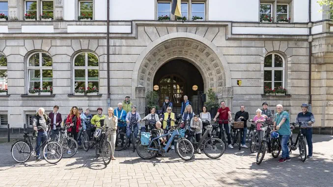 28.07.2023 – Radtour – Mehr als 20 TeilnehmerInnen gingen mit Bürgermeisterin Bettina Weist am Mittwoch gut gelaunt gemeinsam auf Radtour. Sie freuten sich, dass das Wetter mitspielte. Bei dem Rundkurs über 22 Kilometer wurden interessante Punkte im Stadtgebiet angesteuert. Zum Beispiel der Kotten Nie, die Gartenstadt Schultendorf, das Neubaugebiet Schwechater Straße 38, sowie Parks und Grünflächen.