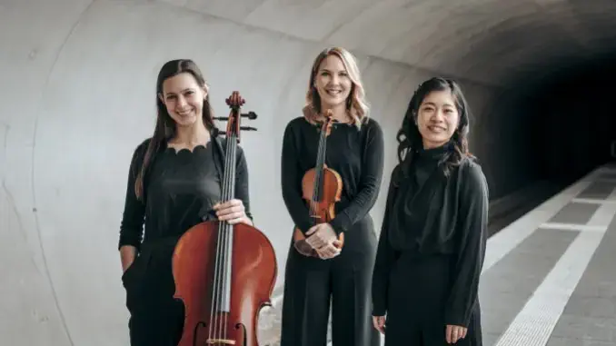 12.04.2024 – Forum Deutscher Musikhochschulen – Am Dienstag, 23. April, 20 Uhr, findet das sechste und vorletzte Konzert der Reihe „Forum Deutscher Musikhochschulen“ der laufenden Saison statt. Es werden drei herausragende Studentinnen der Hochschule für Musik und Darstellende Kunst Frankfurt am Main (HfMDK) in der Mathias-Jakobs-Stadthalle, Friedrichstr. 53, Gladbeck, zu Gast sein. Sie firmieren als Klaviertrio unter dem Namen „Trio Hannari“. Das international besetzte Ensemble setzt sich aus der Finnin Hanna Ponkala-Nitsch (Violine), der Deutschen Larissa Nagel (Violoncello) und der Japanerin Rie Kibayashi (Klavier) zusammen.