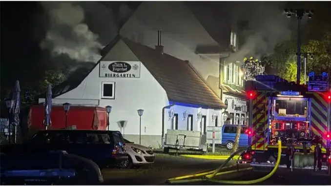 Gladbeck – 27.04.2025 – Restaurant Jägerhof – Am gestrigen Abend hat es an der Gladbecker Stadtgrenze gebrannt. Gegen 20:34 Uhr wurde eine starke Rauchentwicklung aus dem Restaurant „Jägerhof“ an der Straßenecke Buerelter Straße/Im Winkel gemeldet. Das liegt ganz oben in Zweckel. Die einen Straßenseite ist Gelsenkirchen und dort war der Brand.