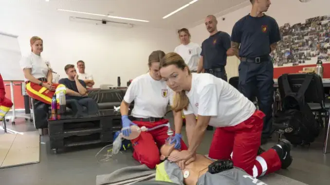 Auch das Thema „Ausbildung“ wird vor dem Hintergrund des akuten Fachkräftemangels immer wichtiger. Beim Studientag der Notfallsanitäter-Auszubildenden standen die Themen „Überprüfung der Vitalitätsdaten“ sowie „Reanimation“ auf dem Stundenplan. Auch die Bürgermeisterin konnte die körperlich anstrengende Herzdruckmassage an einer Übungspuppe trainieren. Sie erfuhr, dass zur Entlastung der Notfallbesatzungen auf den