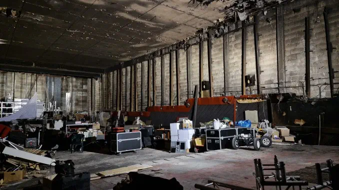 Gestartet war die Initiative um Stefan Langhoff mit einem Verein und etwa 10 bis 15 Mitstreitern. Inzwischen ist er alleiniger Inhaber der „Rex Event Gladbeck“. Nach seinen Angaben gibt es noch etwa 15 Aktive, die sein Bemühen unterstützen, das seit 28 Jahren leerstehende Kino nebst Kneipe zu reaktivieren. Langhoff führte heute Interessenten durch die Räumlichkeiten. Dabei wurde deutlich, dass die Wiederherstellung des Kinosaals kostenmäßig kaum zu stemmen ist. Nachstehen zeigen wir zwei Fotos von der Decke des Kinosaal und einen Blick ins ehemalige REX-Kino.