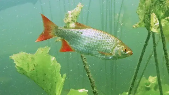 Gladbeck – 25.05.2025 – Rotfeder – Gute Nachrichten gibt es von der Emscher zum „Tag der Artenvielfalt“, der jedes Jahr am 22. Mai gefeiert wird: Die Rotfeder (Scardinius erythrophthalmus) ist mittlerweile an mehreren Stellen entlang der Emscher festgestellt worden.