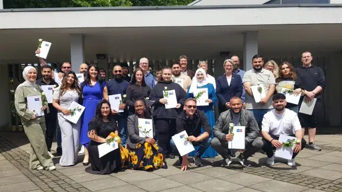 „Bildung ist ein lebenslanger Prozess, der uns stets bereichert und weiterbringt. Nutzen Sie Ihre Neugier und Ihren Wissensdurst, um weiterhin zu wachsen und zu lernen“, gab Marie-Antoinette Breil in ihrer Ansprache den jungen Erwachsenen mit auf den Weg. VHS-Leiter Dirk Langer ergänzte mit den Worten: „Alle reden vom Fachkräftemangel. Nun haben Sie gute Chancen mit ihrem Schulabschluss auf einen Ausbildungsplatz und können selbst etwas dagegen tun.“
