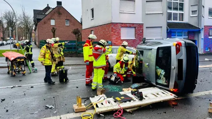Gladbeck – 11.02.2025 – Schwerverletzte Frau – Am Dienstag den 11.02.2025 gegen 08:20 Uhr kam es auf der Konrad-Adenauer-Allee in Fahrtrichtung Gelsenkirchen zu einem Verkehrsunfall zwischen zwei Fahrzeugen.