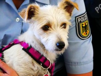 Einen besonderen Dank für die Bundespolizei hatte die kleine Fellnase noch parat: zum Abschied hinterließ sie noch eine Pfütze im Wachlokal.