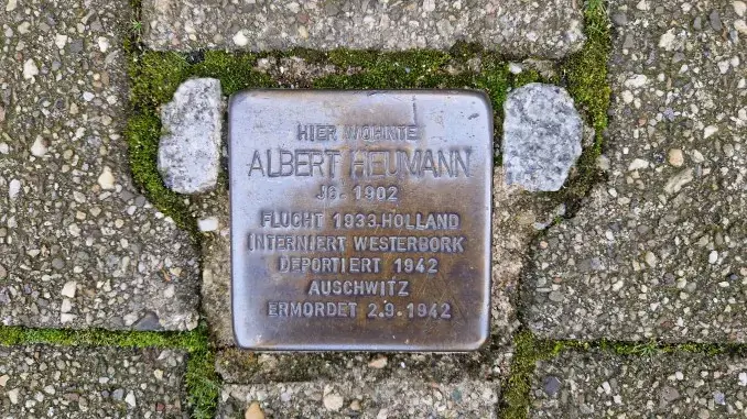 Der 1902 geborene Albert Heumann wohnte zunächst auf der Bochumer Straße 86 in Recklinghausen. 1928 zog er nach Gladbeck in das Haus Roonstraße 40 (heute Goethestraße 40) und ließ sich dort als Rechtsanwalt nieder. Mit der Machtübernahme der Nationalsozialisten 1933 erhielt er Berufsverbot. Das führte dazu, dass er im Juni 1933 mit seinem Bruder Erich in die Emigration nach Frankreich ging.