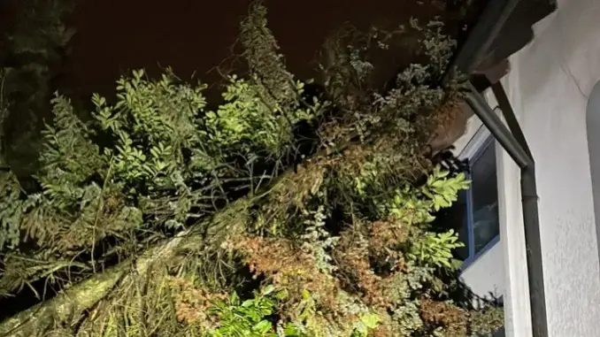 Im Süden der Stadt sind zudem Keller mit Wasser vollgelaufen. In Rentfort ist ein Baum auf die ehemalige Ev. Kirche gestürzt.