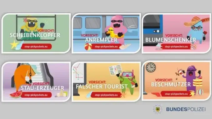 Wertvolle Informationen zum Thema Taschendiebstahl finden Sie in dem angefügten Flyer und unter https://www.bundespolizei.de/Web/DE/02Sicher-im-Alltag/01Vorsicht-Taschendiebstahl/Vorsicht-Taschendiebstahl_node.html sowie https://www.stop-pickpockets.eu.
