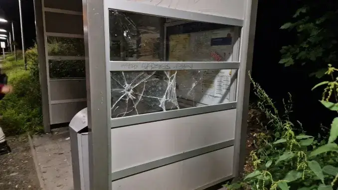 Wartehäuschen am Bahnhof schwer beschädigt