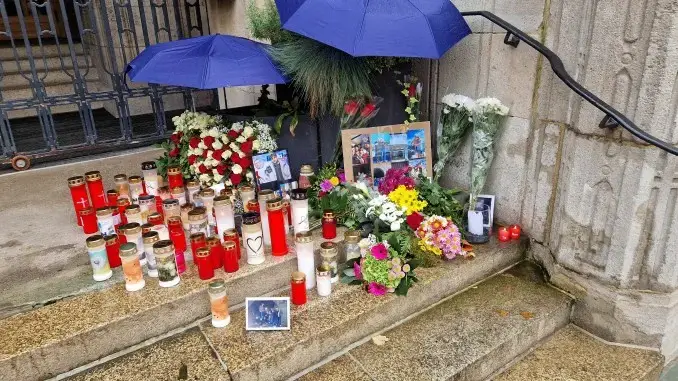 Im Gladbecker Rathauseingang wurde schon gegen Mittag eine kleine Gedenkstelle eingerichtet. Fotos der Verunglückten, viele Blumen und Kerzen sollen erinnern. Im Laufe der beiden Tage besuchten viele hundert Trauernde das Rathausportal und hielten eine Zeit inne.