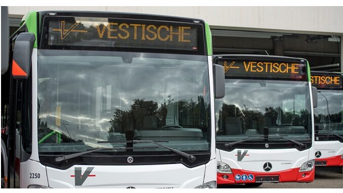 Die neuen Fahrzeuge, für die die Vestische sechs Millionen Euro investiert hat, schützen aber nicht nur die Menschen, sondern auch die Umwelt. Sie entsprechen der Abgasnorm Euro VI. Bei realer Messung im Straßenverkehr am Auspuff – stoßen sie nicht mehr Stickoxide aus als ein moderner Diesel-Pkw. Im Gegenzug mustert die Vestische ältere Fahrzeuge aus. Was die lokalen Emissionen anbelangt, erzeugen die neuen Wagen zehn bis 15 Mal weniger Stickoxide. Angesichts eines um zehn Prozent niedrigeren Kraftstoffverbrauchs verursachen sie entsprechend weniger CO2 und sind damit wesentlich klimaverträglicher.