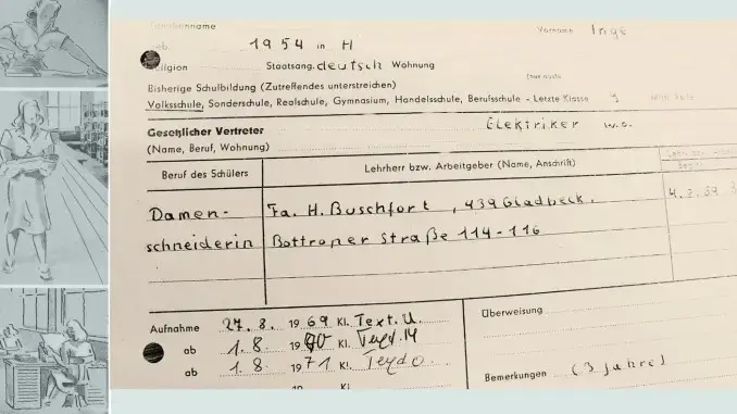 In der Zeit nach dem 2. Weltkrieg standen Mädchen nach dem Abschluss der Volksschule nur wenige Ausbildungsberufe zur Verfügung – für das montanindustriell geprägte Ruhrgebiet galt dies in verstärktem Maße. Die Betriebe der Bekleidungsindustrie spielten in dieser Zeit eine entscheidende Rolle als Ausbildungsstätten.