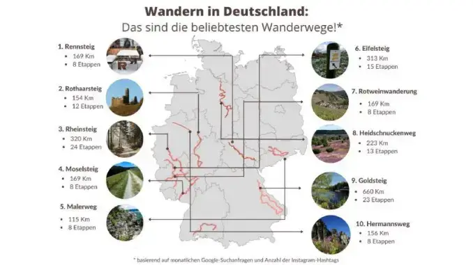 Entdecken Sie die Top 10 der beliebtesten Wanderwege Deutschlands und warum gerade diese so beliebt auf Google und Instagram sind: