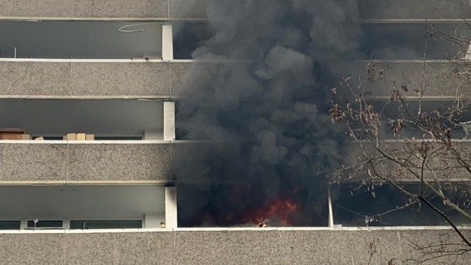 11.02.2022 – Wohnungsbrand – Die Feuerwehr Gladbeck hatte am heutigen Tage um 14.47 Uhr bei einem Wohnungsbrand am Problemhochhaus Steinstraße eine Großeinsatz. Bereits auf der Anfahrt hat die Einsatzleitung die Alarmstufe auf Feuer 4 erhöht. Vor Ort konnte im 6. Obergeschoss eines Hochhauses eine Wohnung in Vollbrand erkundet werden.